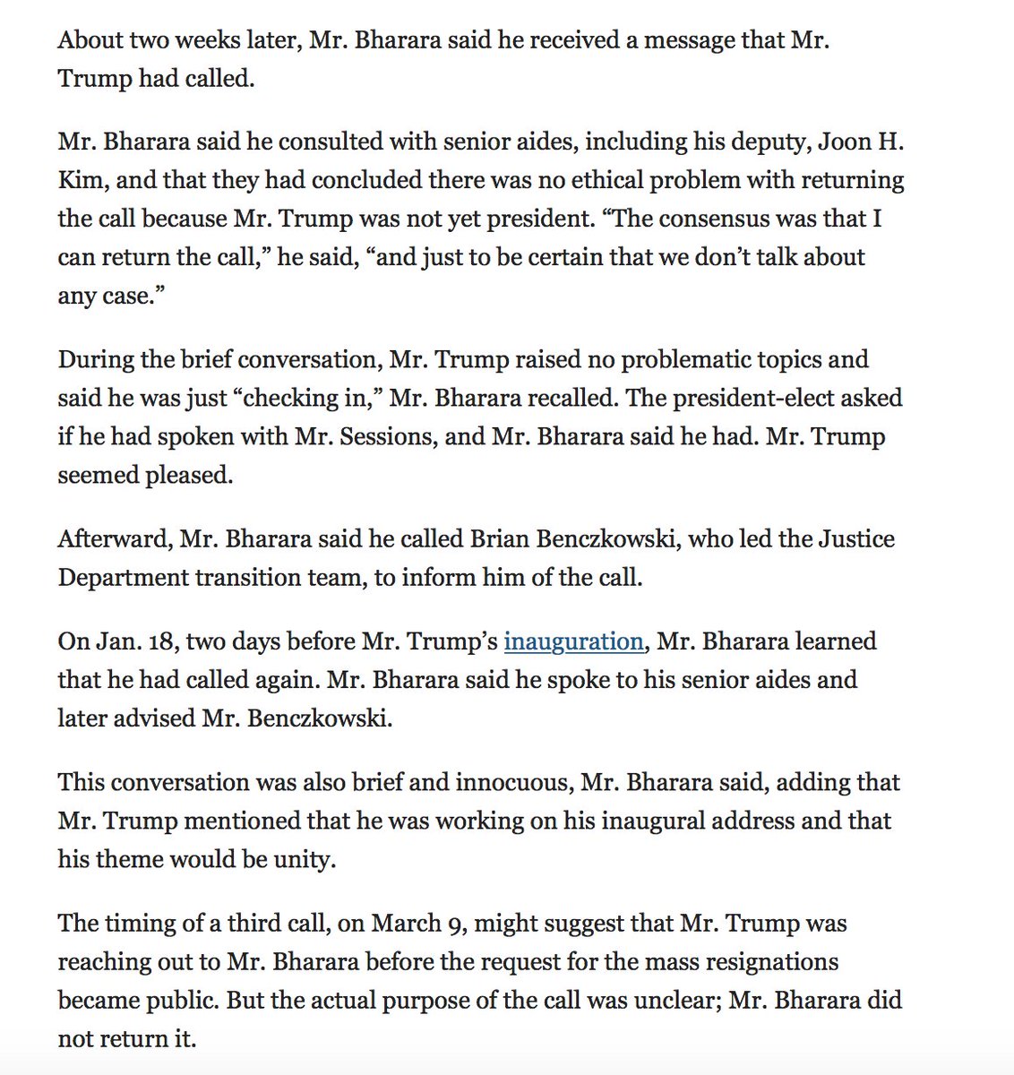 Even though months earlier DT had told Bharara he would remain in his position.