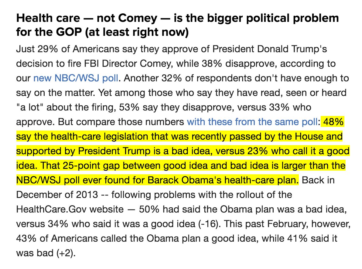 Russia investigation/Comey is a giant story--but health care poses the biggest danger to Republicans (Original Post) kpete May 2017 OP