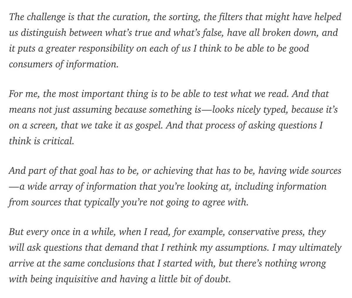 Obama's answer to JFK's grandson about distinguishing between what's true and what's false (Original Post) kpete May 2017 OP