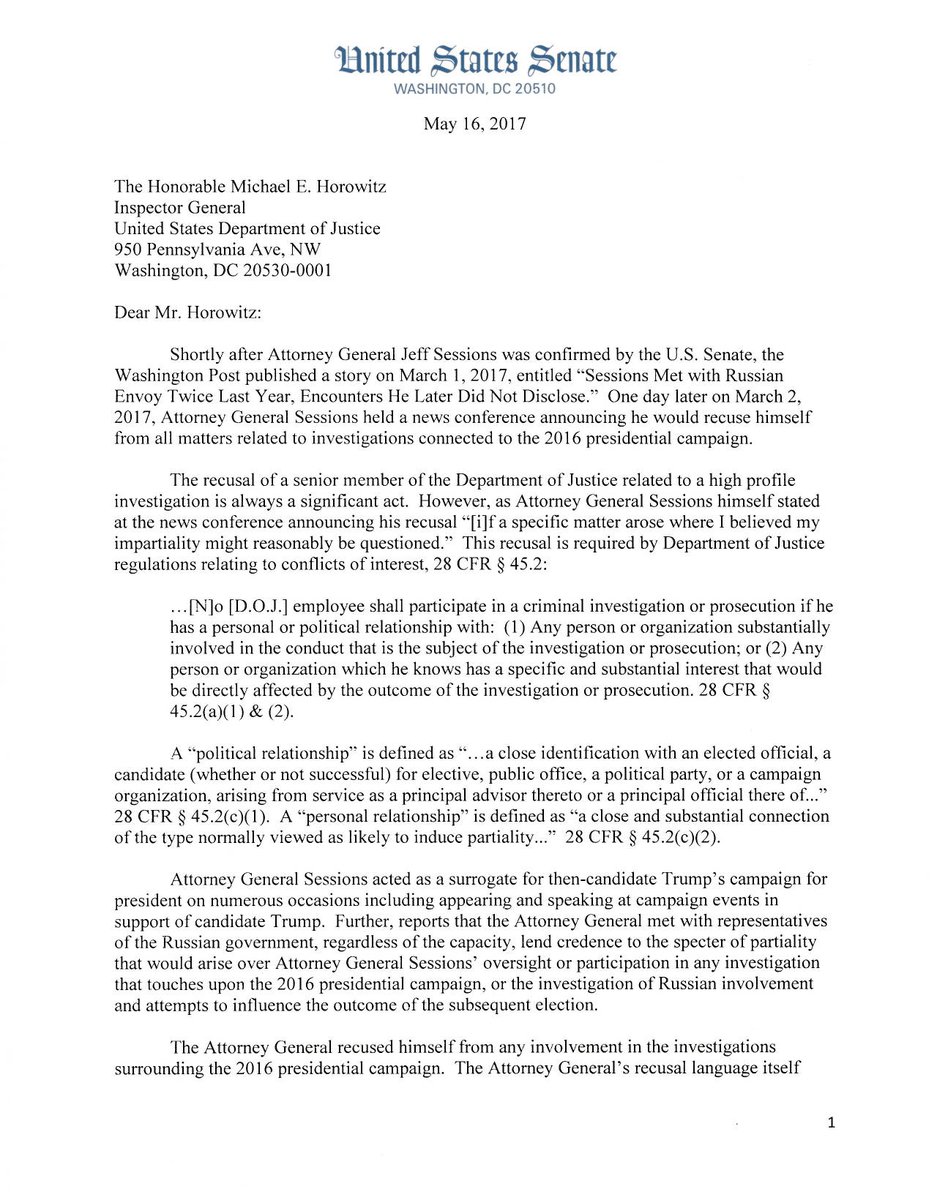 Did Attorney General Sessions violate his recusal? (Original Post) L. Coyote May 2017 OP