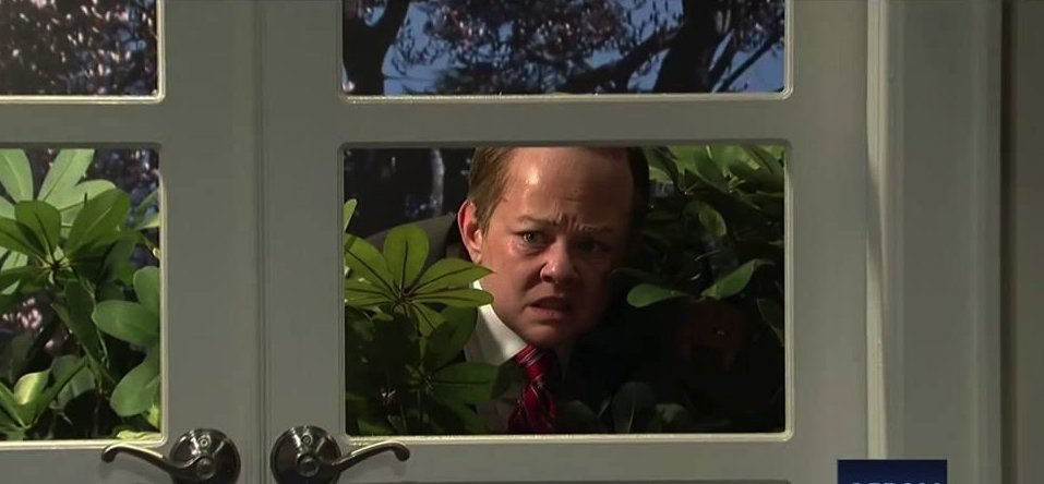 Memes of Spicer hiding in or among bushes quickly spread on social media, and late-night talk show hosts such as Stephen Colbert and Seth Myers latched on. Melissa McCarthys Spicer character even appeared on Saturday Night Live crouching in shrubbery while peering into a White House news conference.............................