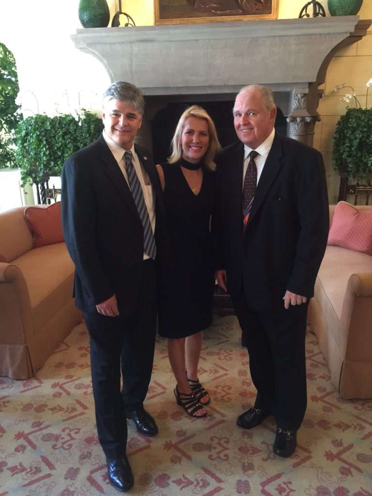 Fox News anchor Sean Hannity, Fox News contributor Laura Ingraham and radio host Rush Limbaugh take a photograph at the funeral service for Ailes (Courtesy: LifeZette)