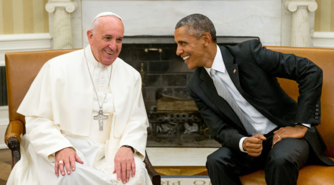 (4,907 posts)but the US delegations seem to always do so for this formal audience. (MO did as well). For example, here's the president of Switzerland, Doris Leuthard, with Francis: