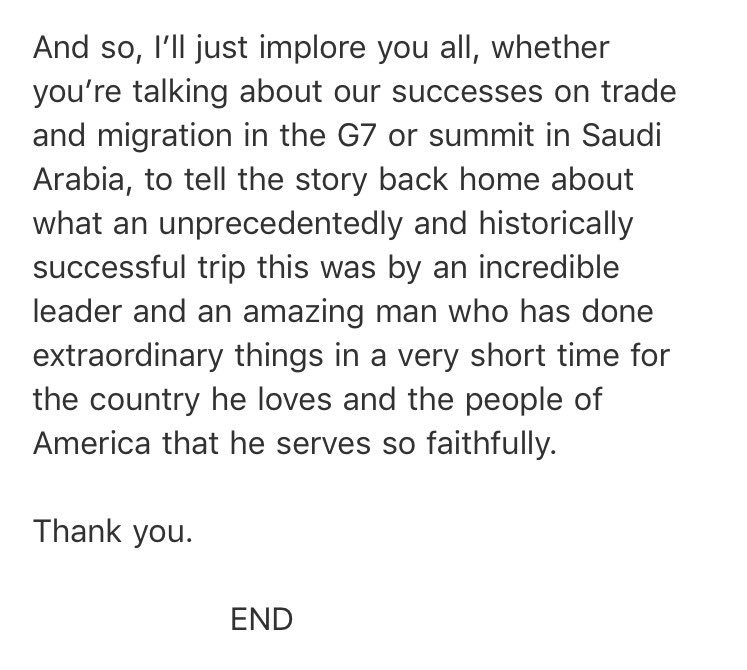 (38,726 posts)look at the 5th line down.. "........unprecedently and historically successful trip this was by an incredible leader and an amazing man who has done extraordinary things......"