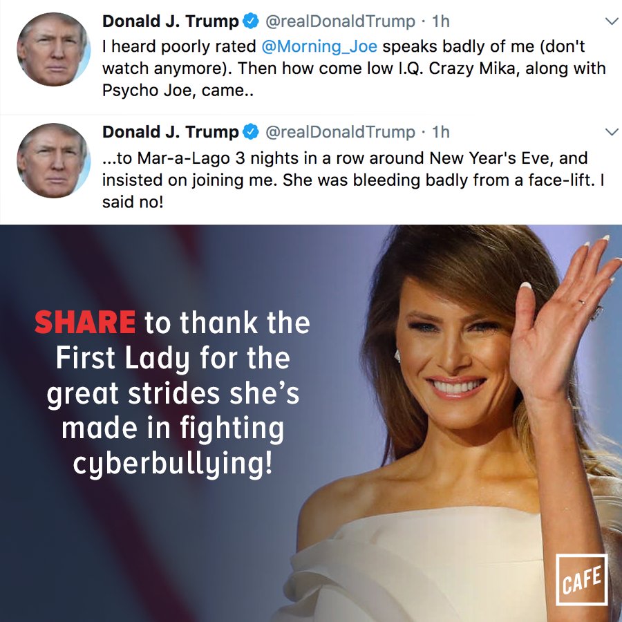 (40,281 posts)But I'm perfectly fine with Joe and Mika attacking him. Distracting him from trying to work on his own agenda. There was a post here yesterday about a report saying that Trump was going around the WH asking people what they thought of his tweets against Joe and Mika. If the Orange Shit Gibbon is spending his day making himself look like an ass engaging in a hissy fit with Joe and Mika rather trying then working the phones trying to get Repubs in line to pass the McConnell health care plan in the Senate, the better for us.