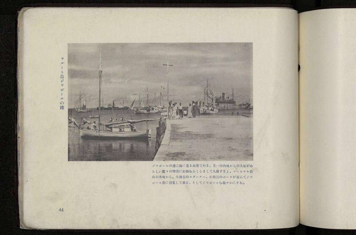 The caption beneath the image makes no mention of the identities of the people in the photograph. It describes maritime activity at the harbour on Jabor in the Jaluit atoll the headquarters for Japans administration of the Marshall Islands between the first world war and its defeat in the second world war.
