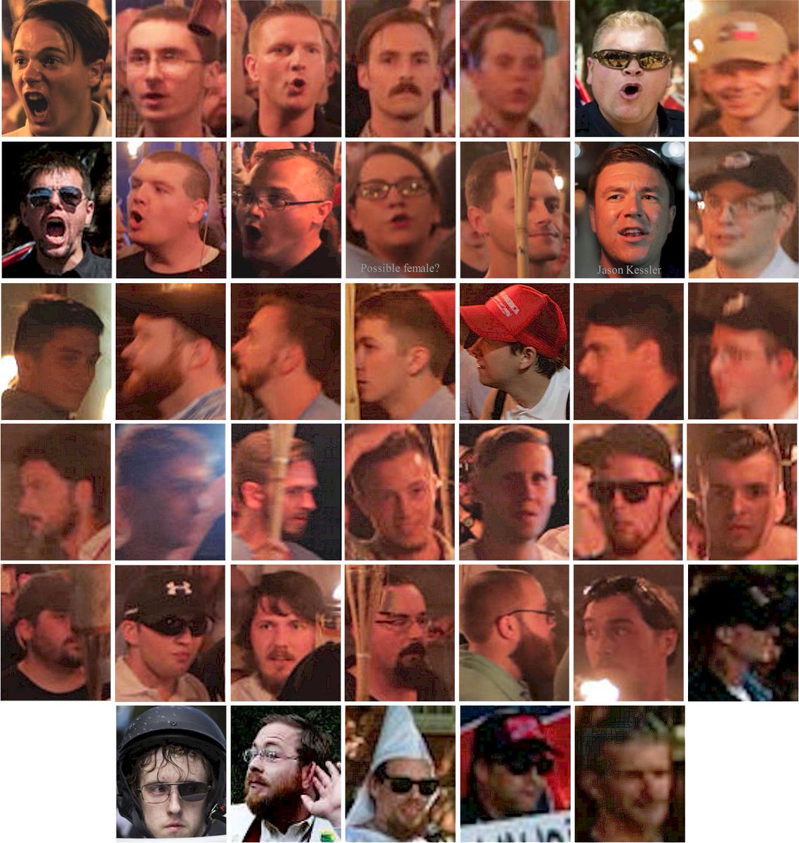 (150,864 posts)Seriously. If anyone recognizes any of them, tweet the photo and his name. Do it anonymously and add the hashtag: #charlottesville nazis