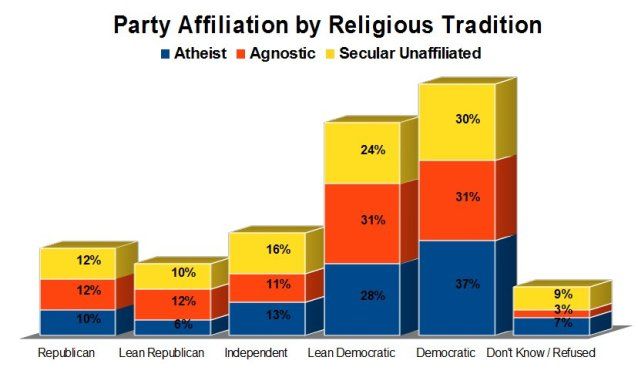 so it's clear that the vast majority of atheists, agnostics and secularly unaffiliated identify as Democrats or lean Democratic.