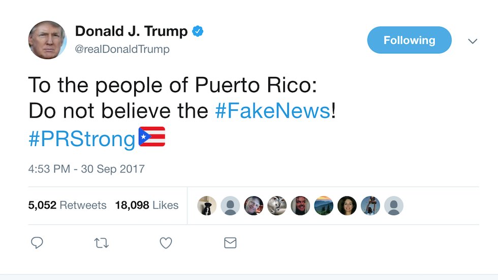 Related: Editorials & Other Articles, Issue Forums, Alliance Forums, Region ForumsTrump to the people of Puerto Rico - Trust me, everything is just fine, fantastic even.