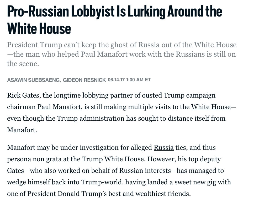 Caroline O. @RVAwonk 7m7 minutes agoSo, Rick Gates was still making "regular trips" to the White House in June...