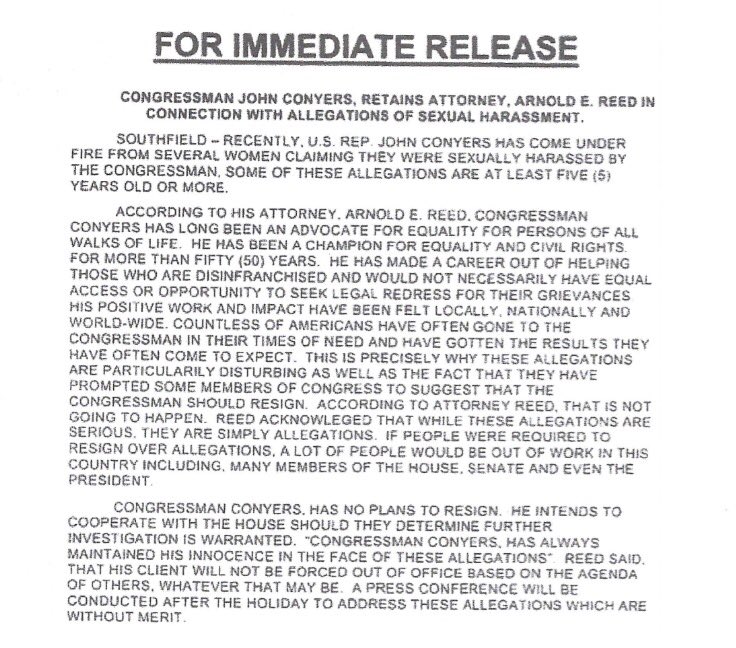 Based on news reports of Conyers actions, I have little hope he can be cleared.