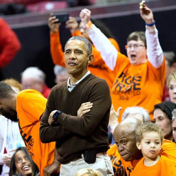 Photo of President @BarackObama courtside cheering for @PrincetonWBB.