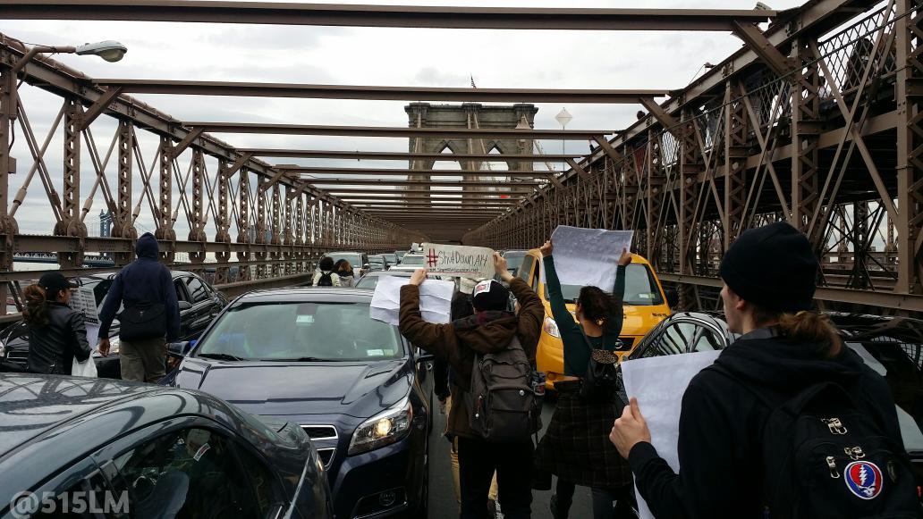 The protesters attempted to enter the Brooklyn Bridge, as they did in previous protests following the deaths of Michael Brown and Eric Garner.