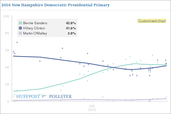 Then from the mid-summer to late September/early October, Clinton's polling consistently fell from the upper 60s to the mid-40s while Sanders' polling rose from zero to the mid-20s.
