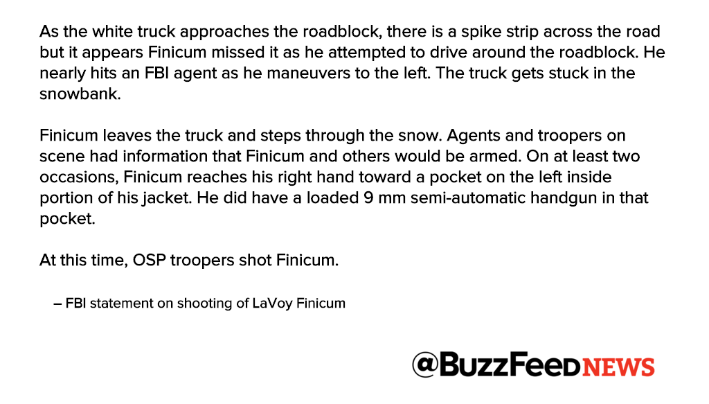 (8,975 posts)is the exchange of words that reportedly took place between Finicum and the officers near him at the time of the shooting.