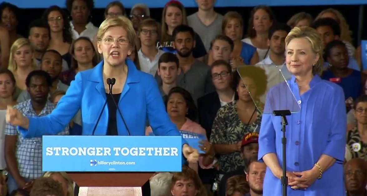 This morning in Cincinnati you saw Warren clapping emphatically in Clintons direction, as if to tell her progressive followers that theyd better support her in the election or else. You heard Clinton repeatedly referring to Senator Warren by her first name of Elizabeth in an intentional show of informality, while praising Warrens work creating the Consumer Financial Protection Bureau and thanking her for her attacks on Donald Trump.