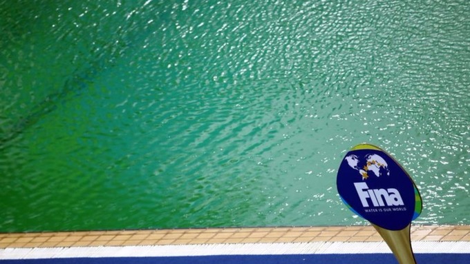 The pool turned green on Tuesday, becoming the subject of numerous jokes and creating a headache for organizers. An adjacent pool used for water polo and synchronized swimming has also started to change color.