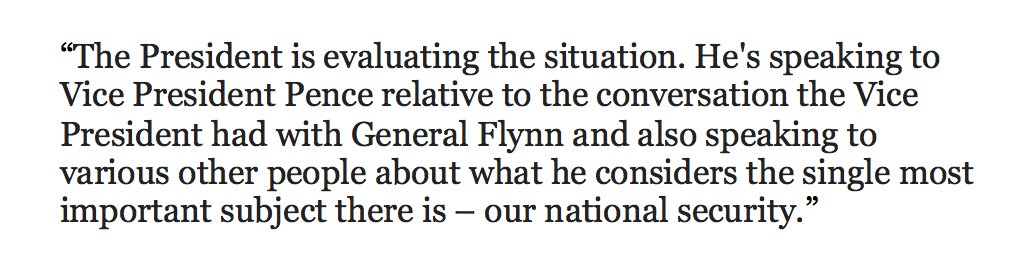 Spicer just read a statement on Flynn: The President is evaluating the situation...