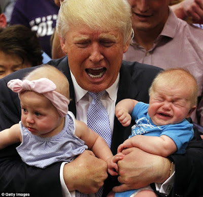 Republican presidential nominee Donald Trump holds a baby during a rally in the Special Events Center of the Florida State Fairgrounds in Tampa, Florida on November 5, 2016. / AFP / MANDEL NGAN (Photo credit should read MANDEL NGAN/AFP/Getty Images)
