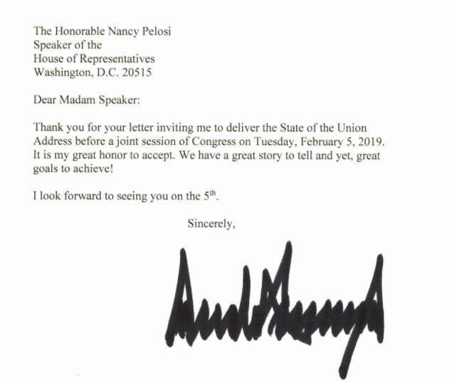 Read more: https://thehill.com/homenews/house/427324-pelosi-invites-trump-for-state-of-the-union-on-feb-5