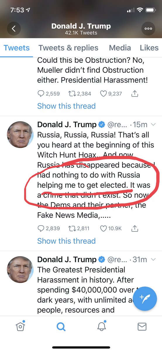 And that, of course, is an admission it's not a 'hoax' or 'witch hunt'; Russia interfered, and an investigation into that was needed. And obstruction of that investigation is a crime, even if Trump wasn't shown to be active in the initial interference.