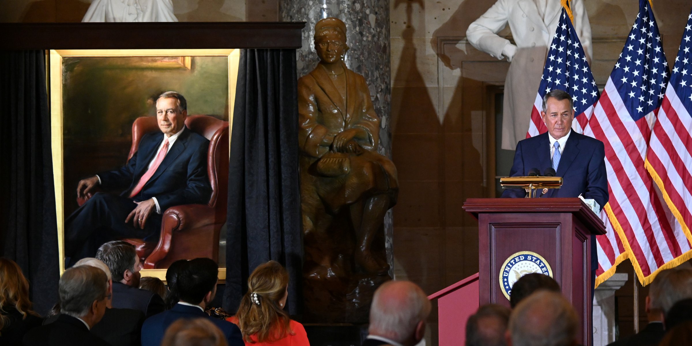 Full headline: Former House Speaker John Boehner cried as his portrait was unveiled in a uniting moment for Republicans and Democrats