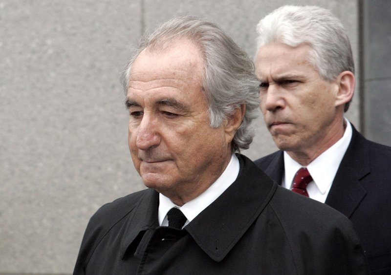FILE - In this Tuesday, March 10, 2009, file photo, former financier Bernie Madoff exits federal court in Manhattan, in New York. Madoff asked a federal judge Wednesday, Feb. 5, 2020, to grant him a compassionate release from his 150-year prison sentence, saying he has terminal kidney failure and less than 18 months to live. (AP Photo/David Karp, File)
