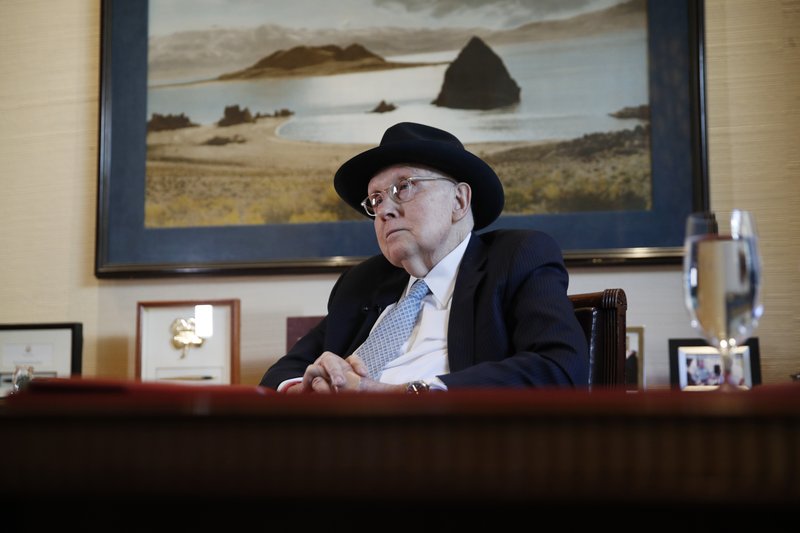 Former U.S. Sen. Harry Reid listens during an interview Wednesday, Feb. 19, 2020, in Las Vegas. (AP Photo/John Locher)