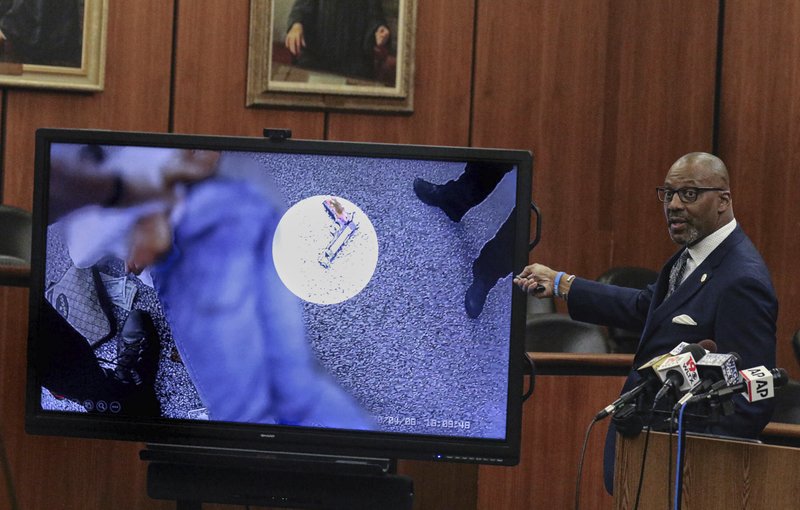 Fifth Circuit Solicitor Byron Gipson highlights the gun that Joshua Ruffin was carrying when he was shot by City of Columbia police officer, Kevin Davis, during a press conference Wednesday, June 24, 2020 concerning the police officer shooting of Joshua Ruffin. Ruffin, 17, was killed April 8 after he ran away when the police officer started asking him questions and pointed a gun at the officer chasing him, Columbia police Chief Skip Holbrook said. (Tracy Glantz/The State via AP)