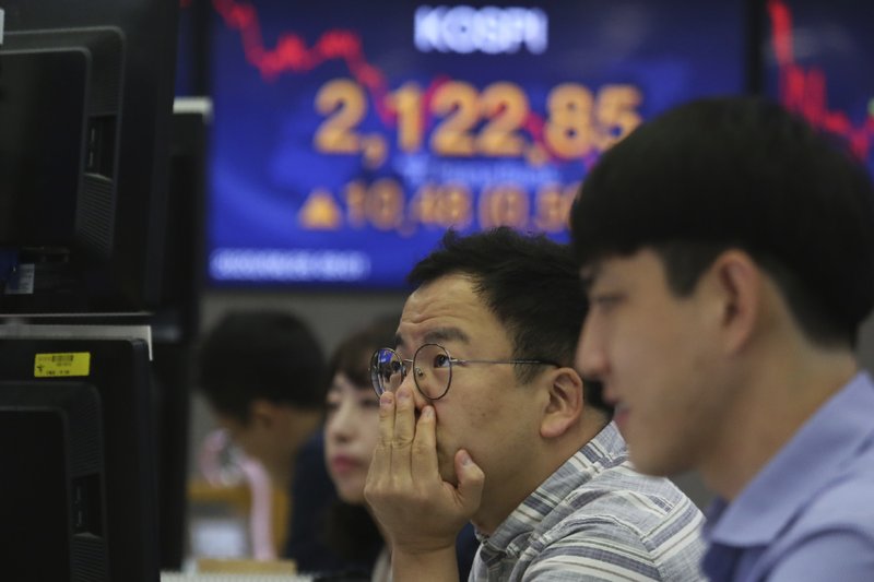 A currency trader watches monitors at the foreign exchange dealing room of the KEB Hana Bank headquarters in Seoul, South Korea, Friday, June 26, 2020. Asian stock markets followed Wall Street higher on Friday after U.S. regulators removed some limits on banks' ability to make investments. (AP Photo/Ahn Young-joon)