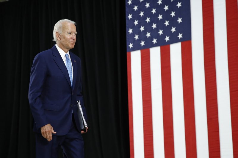 Democratic presidential candidate, former Vice President Joe Biden departs after speaking at Alexis Dupont High School in Wilmington, Del., Tuesday, June 30, 2020. (AP Photo/Patrick Semansky)
