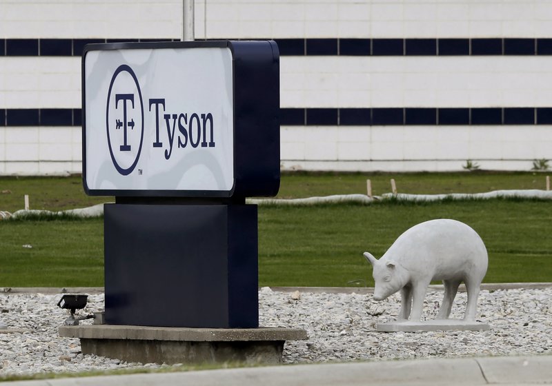 In this May 1, 2020, file photo, a sign sits in front of the Tyson Foods plant in Waterloo, Iowa. A group of worker advocacy organizations has filed a civil rights complaint with the U.S. Department of Agriculture alleging that meat processing companies Tyson and JBS have engaged in workplace racial discrimination during the coronavirus pandemic. The complaint alleges the companies adopted polices that reject U.S. Centers for Disease Control and Prevention guidance on distancing and protective gear on meat processing lines. The complaint says the operating procedures have a discriminatory impact on mostly Black, Latino, and Asian workers. (AP Photo/Charlie Neibergall, file)
