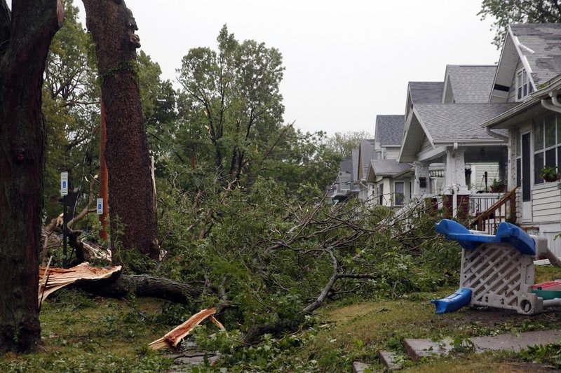 The storm known as a derecho tore from eastern Nebraska across Iowa and parts of Wisconsin and Illinois, blowing over trees, flipping vehicles and causing widespread damage to property and crops. The storm left downed trees and power lines that blocked roadways in Chicago and its suburbs. After leaving Chicago, the most potent part of the storm system moved over north central Indiana.