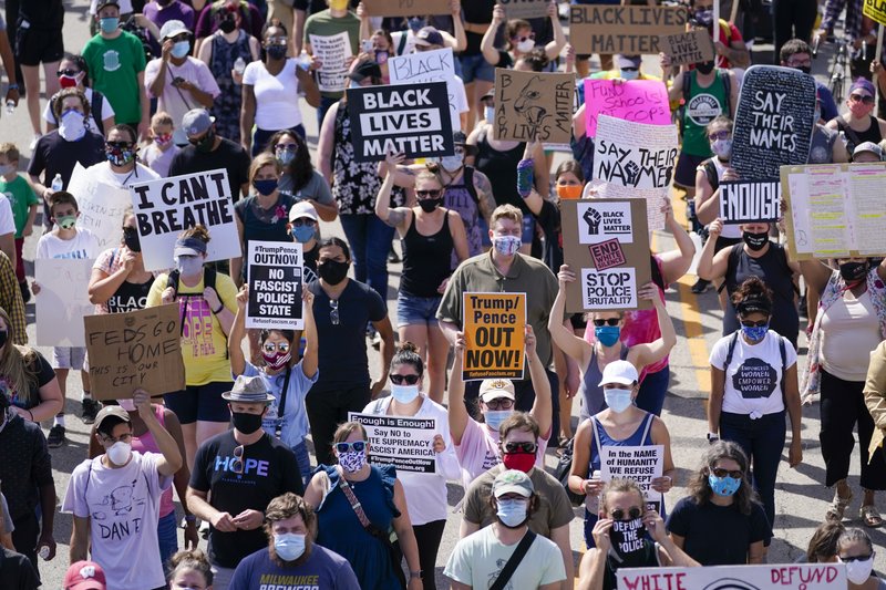 KENOSHA, Wis. (AP) Roughly a thousand people gathered Saturday in Kenosha for a march and rally against police violence, about a week after an officer shot Jacob Blake in the back and left the 29-year-old Black man paralyzed.