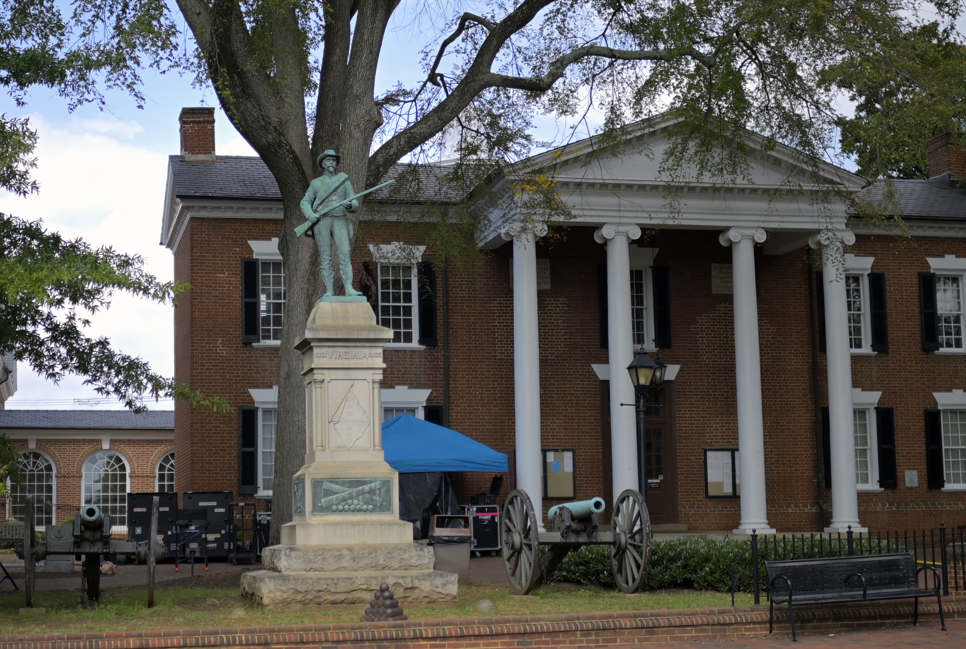 - A cannon was hoisted by a forklift and removed from the side of the Confederate statue in front of the Albemarle County courthouse in Charlottesville on Saturday, Sept. 12. (John McDonnell/The Washington Post)