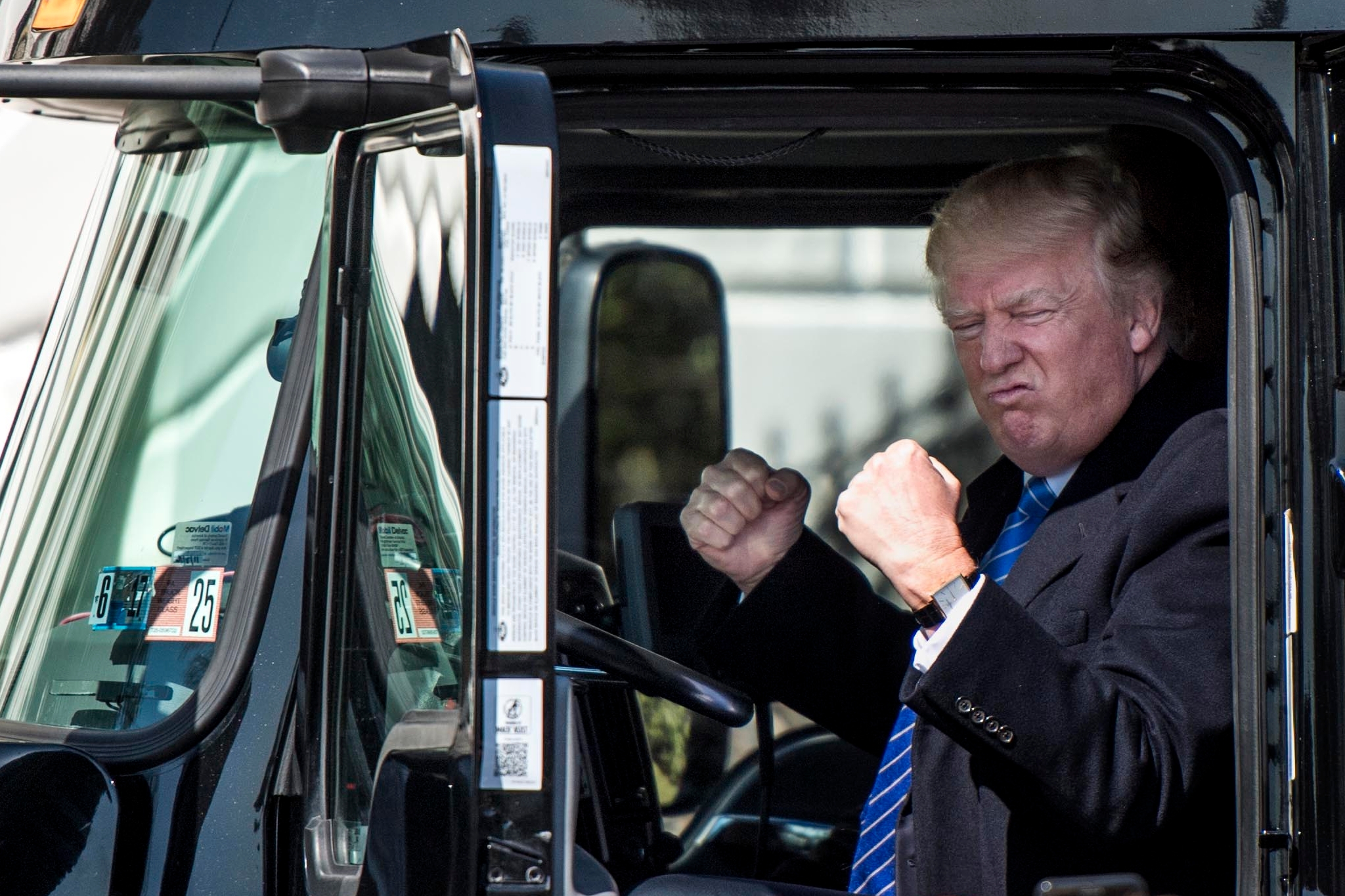 Apparently Trump believes this is the way a real man looks driving his truck.