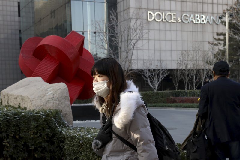 FILE - In this Nov. 25, 2018 file photo, a woman walks past a Dolce&Gabbana retail outlet in Beijing, China. The Milan fashion house Dolce&Gabbana filed a multi-million-dollar defamation suit in an Italian court against U.S. fashion bloggers who reposted anti-Asian comments attributed to one of the designers that led to a boycott by Asian consumers. The suit was filed in Milan civil court in 2019, but only became public this week, Thursday, March 4, 2021, when the bloggers posted about it on their Instagram profile, Diet Prada. (AP Photo/Ng Han Guan, file)