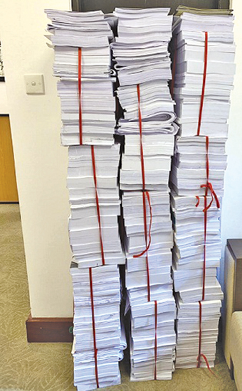 Of course it doesn't have to be all 'physical sheets of paper' (I would hope digital submission is allowed in this day and age), but it helps to be able to visualize what it would look like if it were.