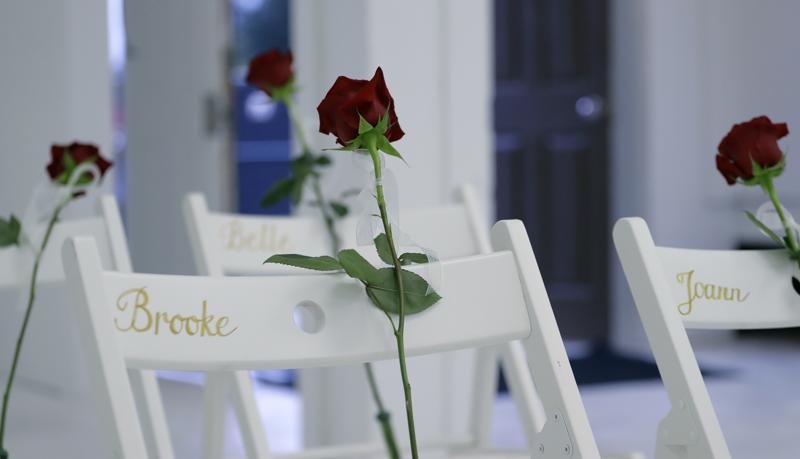 FILE - In this Nov. 12, 2017 file photo, a memorial for the victims of the shooting at Sutherland Springs Baptist Church includes 26 white chairs, each painted with a cross and and rose and placed in the sanctuary, in Sutherland Springs, Texas. A federal judge ruled Wednesday, July 7, 2021, the U.S. Air Force was "60% responsible" for the attack at First Baptist Church in Sutherland Springs because it failed to submit Devin Kelley's criminal history into a database, which should have prevented the gunman from purchasing the weapon used in the attack. (AP Photo/Eric Gay, File)