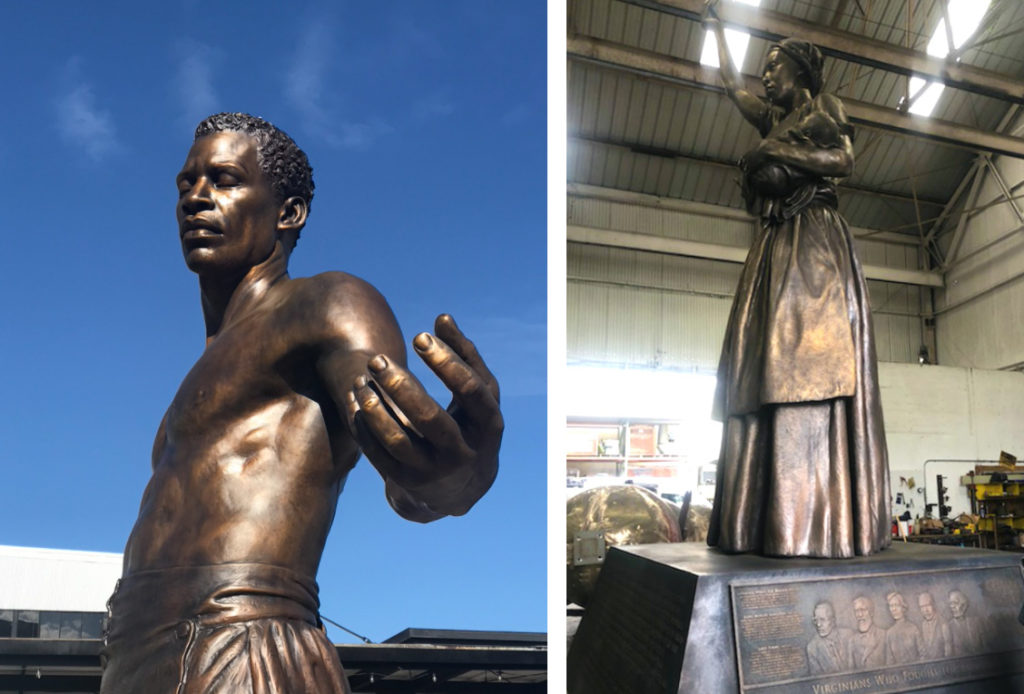 It consists of two 12-foot bronze statues of a man and a woman holding an infant who have been newly freed from slavery. The statue's pedestal includes the names, images and stories of 10 Virginians who contributed to the struggle for freedom before and after emancipation, including Dred Scott, whose lawsuit led to the Supreme Court decision that persons of African descent were not U.S. citizens; Nat Turner, who led a successful slave rebellion; and educator Lucy Simms.