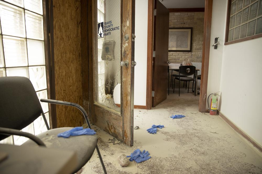 No one was in the Travis County Democratic Party headquarters when it was attacked at around 2 a.m. Wednesday and only a small stack of papers caught fire, officials said. The blaze was quickly extinguished by employees of a neighboring business.