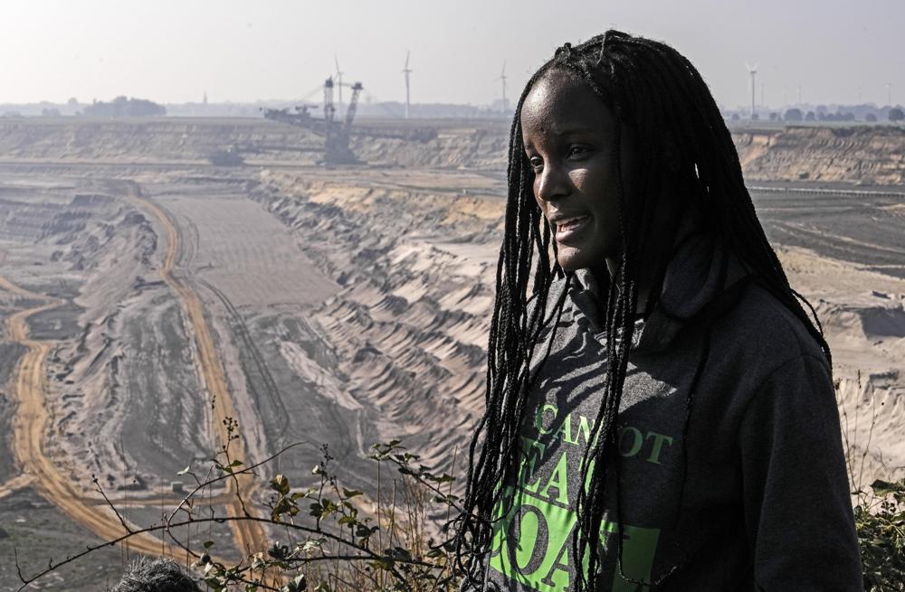 Climate activist Vanessa Nakate from Uganda gives an interview to the Associated Press during her visit to the Garzweiler open-cast coal mine in Luetzerath, western Germany, Saturday, Oct. 9, 2021. Garzweiler, operated by utility giant RWE, has become a focus of protests by people who want Germany to stop extracting and burning coal as soon as possible. (AP Photo/Martin Meissner)