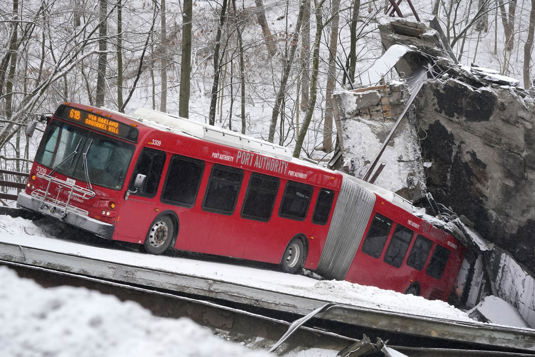 Adam Brandolph, a spokesman for the Port Authority of Pittsburgh, said in an email that the bus had nearly reached one side of the bridge when the structure began to collapse. There were two passengers onboard with the driver, he said, and no injuries were reported. The White House said in a statement that Mr. Biden had been told about the bridge collapse.