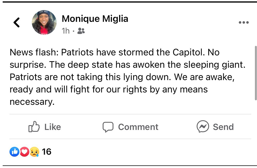 Former deputy attorney general Monique Miles also espoused unfounded conspiracy theories about voter fraud and election interference in more than a dozen Facebook comments that spanned months. Four people who interacted with Miles on Facebook confirmed the authenticity of the posts.