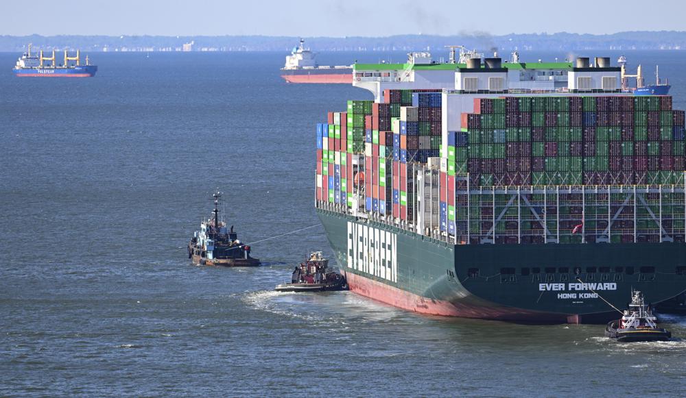 After two unsuccessful attempts to dislodge it, and the subsequent removal of roughly 500 of the 5,000 containers it was carrying, the Ever Forward was refloated just before 7 a.m. Sunday by two barges and five tugboats.