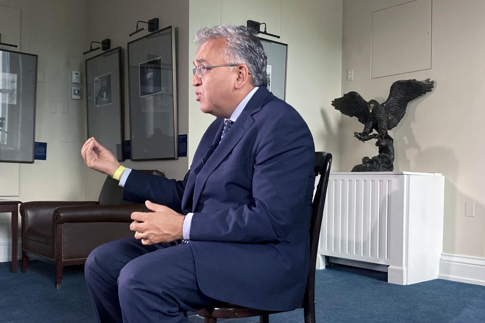 White House COVID-19 Response Coordinator Dr. Ashish Jha, speaks to The Associated Press, Thursday, May 12, 2022 on the White House complex in Washington. Speaking to the Associated Press, Jha said Americans' immune protection from the virus is waning and the virus is adapting to be more contagious, and that booster doses for most people will be necessary with the potential for enhanced protection from a new generation of shots. (AP Photo/Nathan Elgren)
