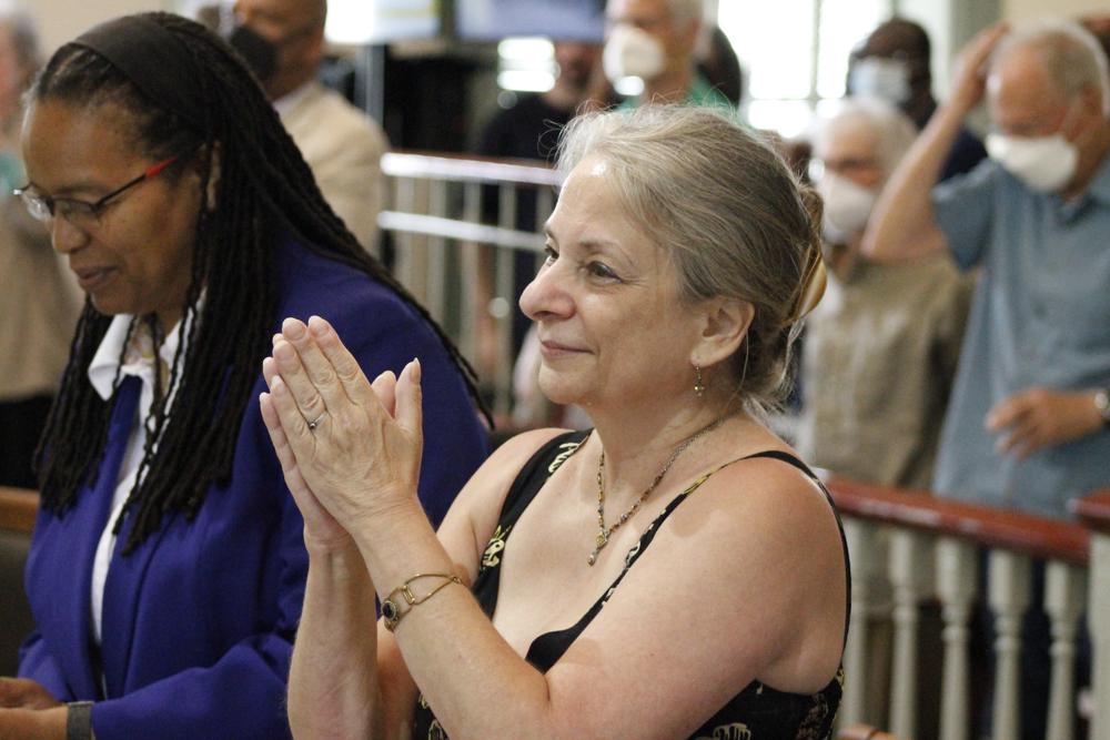 - Amy Zowniriw, niece of Igal Roodenko, applauds an announcement by a judge in Hillsborough, N.C., Friday, June 17, 2022, that the conviction of her uncle, civil rights leader Bayard Rustin, and 2 other men were vacated. The 4 men were sentenced to work on a chain gang in North Carolina after they were arrested in Chapel Hill, N.C., in 1947 during one of the early freedom rides. (AP Photo).