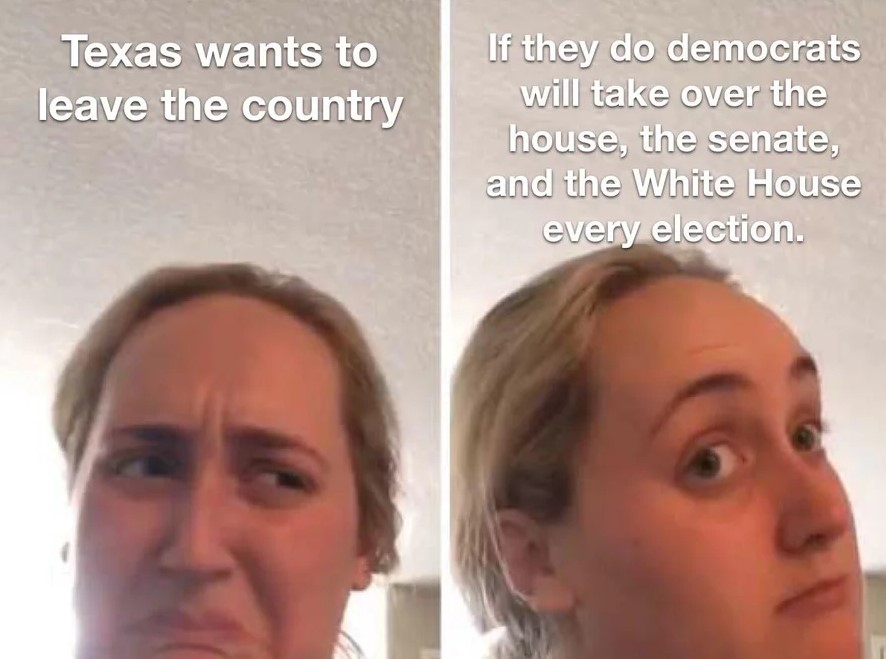 Rather than full secession, division is what the GOP folk should be pushing. But who is going to give up the Lone Star to be a citizen of Galvestonia or the great state of Greater DAFW?