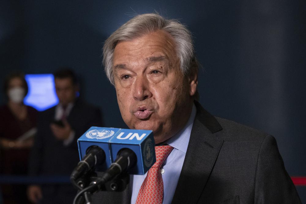 United Nations Secretary-General Antonio Guterres makes remarks before the 2022 Nuclear Non-Proliferation Treaty (NPT) review conference in the United Nations General Assembly, Monday, Aug. 1, 2022. (AP Photo/Yuki Iwamura)