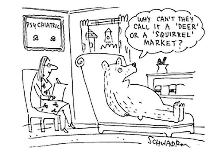(108,684 posts)A bear market is when a market experiences prolonged price declines. It typically describes a condition in which securities prices fall 20% or more from recent highs amid widespread pessimism and negative investor sentiment.